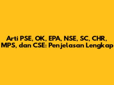 Arti PSE, OK, EPA, NSE, SC, CHR, MPS, Dan CSE: Penjelasan Lengkap
