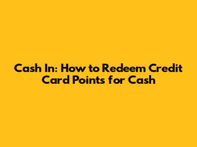 Cash In: How To Redeem Credit Card Points For Cash