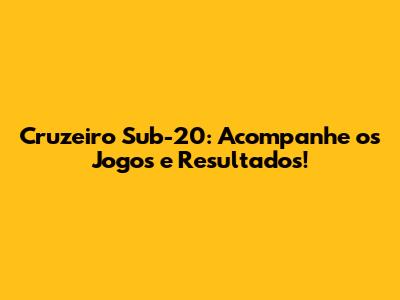 Onde Encontrar as Informações Sobre o Jogo do Cruzeiro Sub-20?