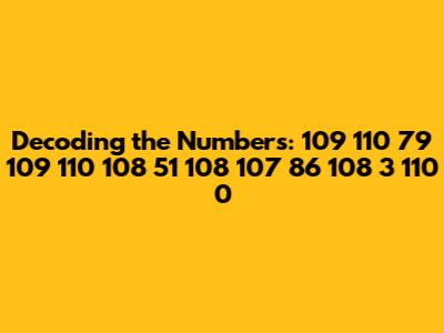 Decoding The Numbers: 109 110 79 109 110 108 51 108 107 86 108 3 110 0