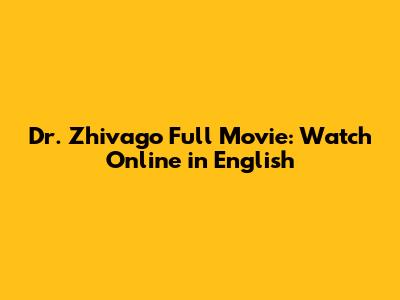 Dr. Zhivago Full Movie: Watch Online In English