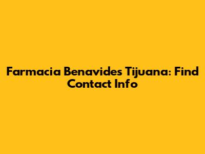 Farmacia Benavides Tijuana: Find Contact Info