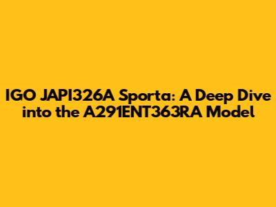 IGO JAPI326A Sporta: A Deep Dive Into The A291ENT363RA Model