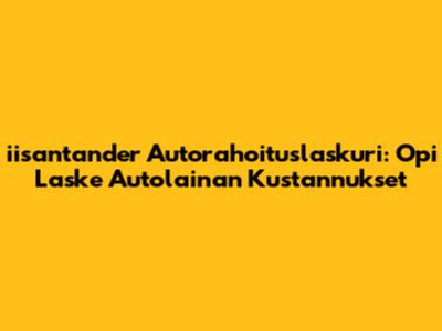 Hei kaikille! Oletko miettinyt uuden auton hankintaa, mutta et ole varma, miten päästä alkuun rahoituksen kanssa? Älä huoli, sillä tässä artikkelissa käymme läpi kaiken, mitä sinun tarvitsee tietää iisantanderin autorahoituslaskurista ja siitä, miten voit laskea autolainan kustannukset helposti. Meillä on sinulle hyviä uutisia: autorahoituslaskuri on erittäin kätevä työkalu, jonka avulla voit suunnitella autohankintasi budjettisi mukaisesti. Käymme läpi, mitä autorahoituslaskuri tekee, miten sitä käytetään, ja mitä asioita sinun kannattaa ottaa huomioon autolainaa hakiessasi. Valmistaudu siis oppimaan kaikki tarvittavat tiedot, jotta voit tehdä fiksuja päätöksiä autolainan suhteen! Tässä artikkelissa keskitymme erityisesti iisantanderin autorahoituslaskuriin, mutta tiedot pätevät yleisesti autorahoitukseen.