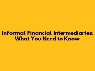 Informal Financial Intermediaries: What You Need To Know