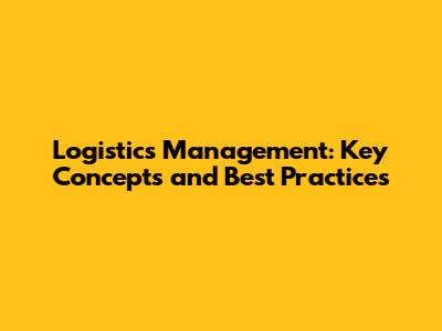 Logistics Management: Key Concepts And Best Practices