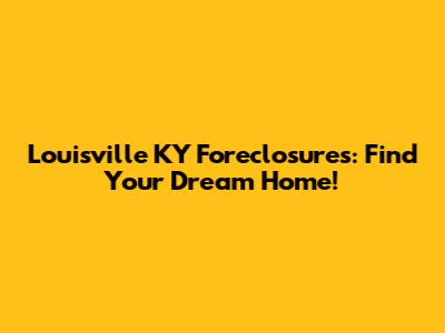Louisville KY Foreclosures: Find Your Dream Home!