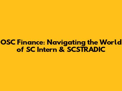 OSC Finance, SC Intern & SCSTRADIC: Your Guide