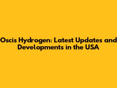 Oscis Hydrogen: Latest Updates And Developments In The USA