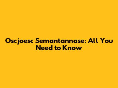 Oscjoesc Semantannase: All You Need To Know