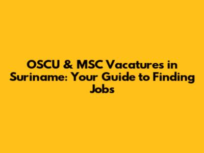 OSCU & MSC Vacatures: Find Jobs In Suriname