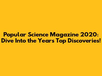 Popular Science Magazine 2020: Dive Into The Year's Top Discoveries!