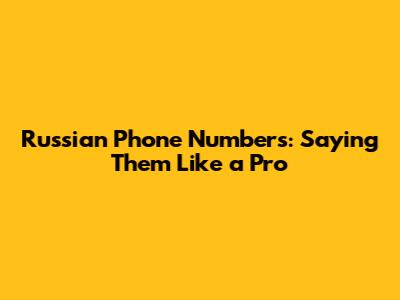 Russian Phone Numbers: Saying Them Like A Pro