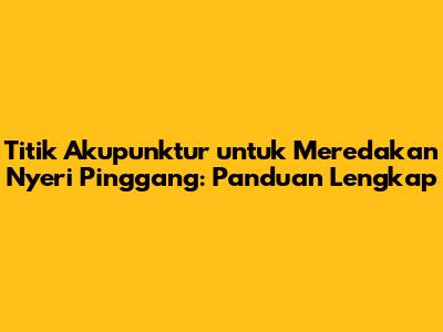 Titik akupunktur untuk nyeri pinggang adalah salah satu solusi yang efektif dan aman untuk mengatasi masalah ini. Dengan memahami bagaimana akupunktur bekerja, titik-titik penting yang digunakan, dan cara menjalani pengobatan, kamu bisa mengambil langkah positif untuk meredakan nyeri dan meningkatkan kualitas hidupmu. Ingat, selalu konsultasikan dengan praktisi akupunktur yang bersertifikasi untuk mendapatkan diagnosis dan perawatan yang tepat.