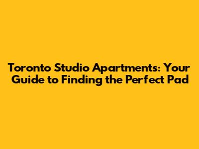 Toronto Studio Apartments: Your Guide To Finding The Perfect Pad