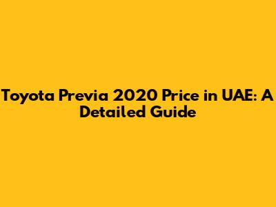 • New Toyota Previa 2020: Unfortunately, Toyota doesn't typically offer the Previa as a brand-new model in the UAE anymore. However, if you were to find a leftover model from previous years, the price could range from AED 120,000 to AED 150,000, depending on the trim and features.