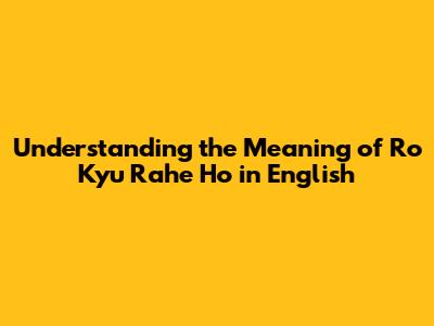 Unpacking 'Ro Kyu Rahe Ho': Meaning & Nuances In English